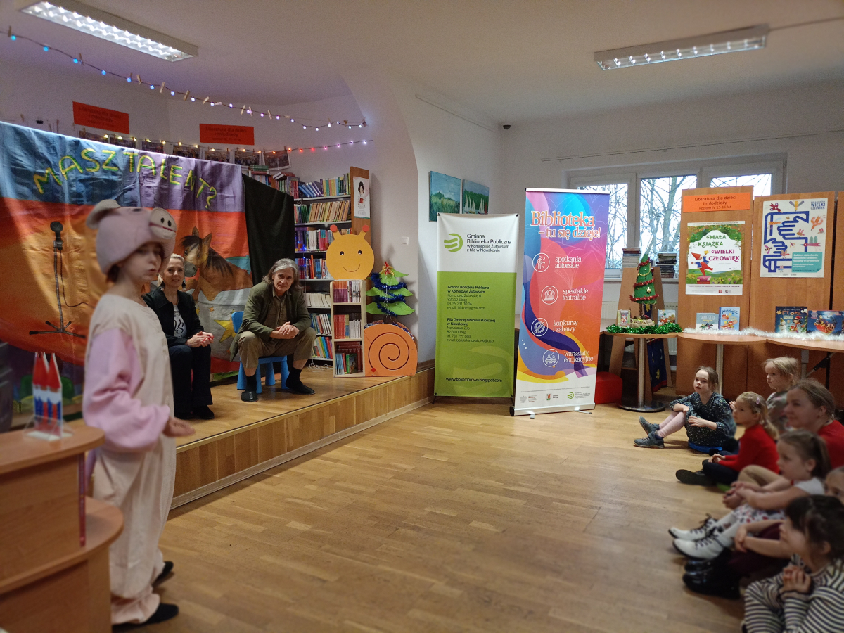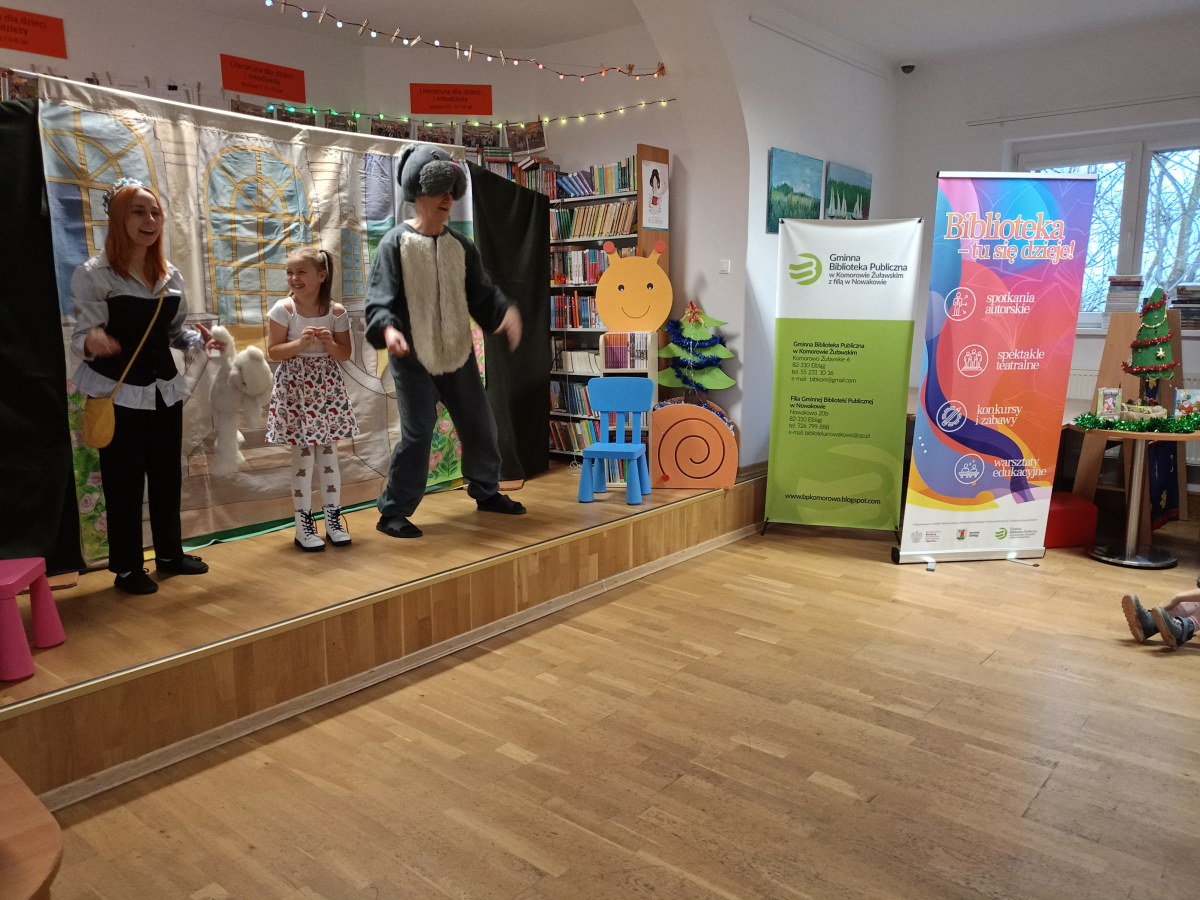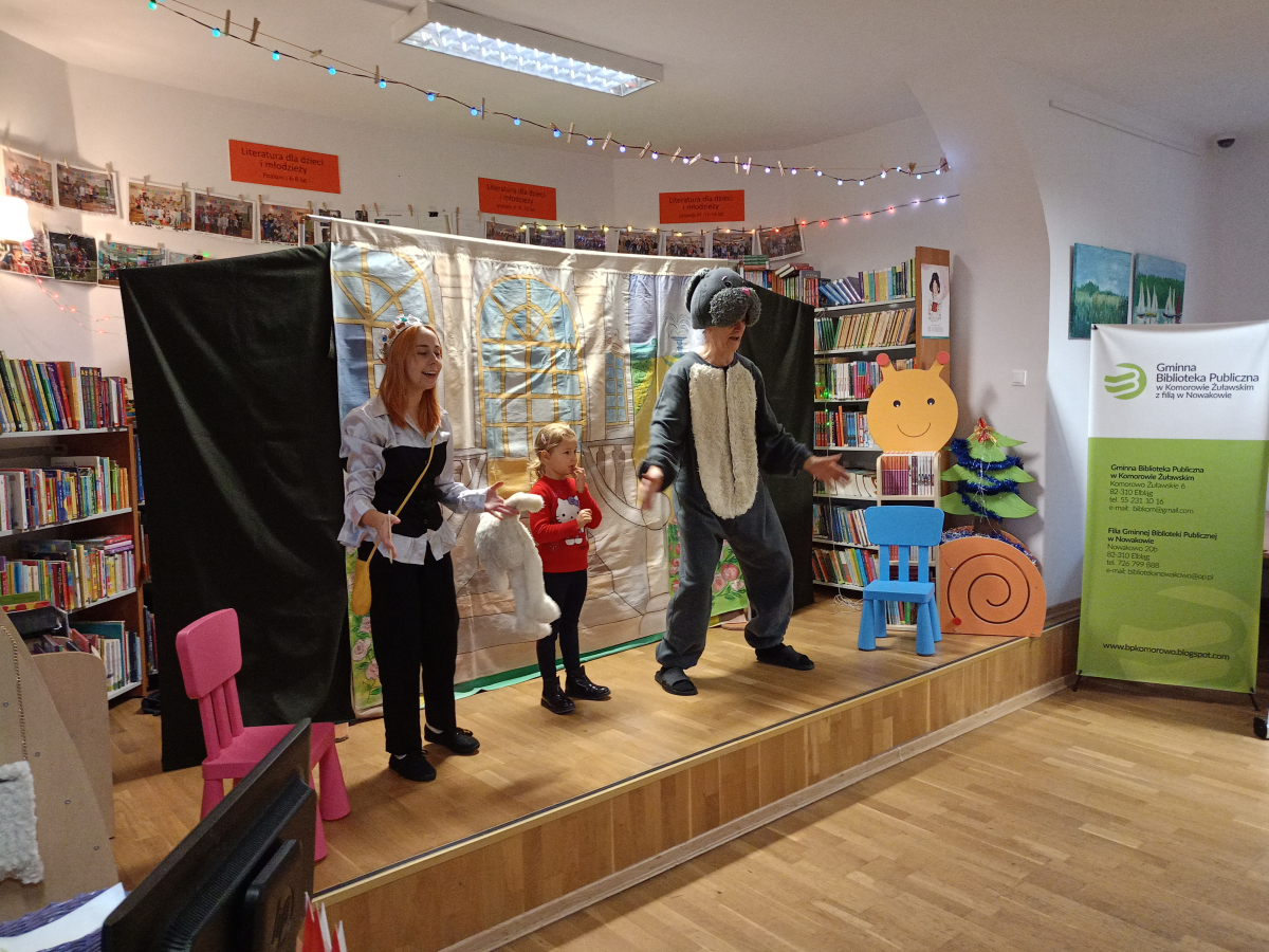 6 grudnia 2025 r. w Gminnej Bibliotece w Komorowie Żuławskim odbyły się wyjątkowe Mikołajki, które w tym roku uświetnił spektakl pt. „Magiczny ołówek”. Dzieci z dużym zainteresowaniem śledziły historię pełną humoru, ciepła i magii, a aktorzy wspaniale wciągnęli młodych widzów do wspólnej zabawy.