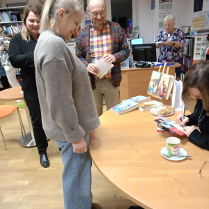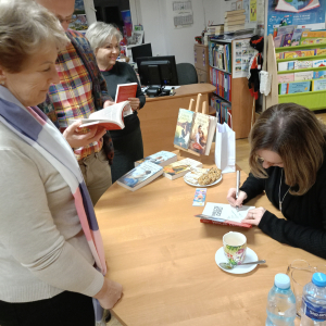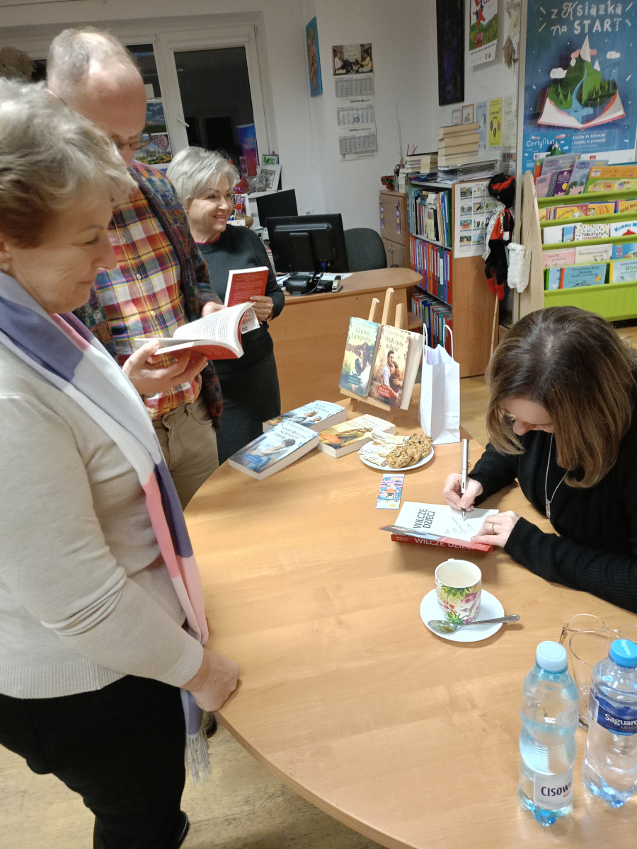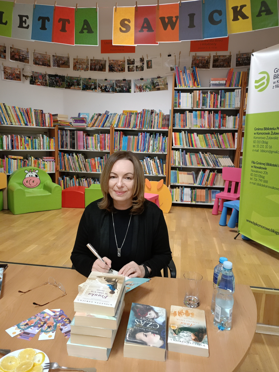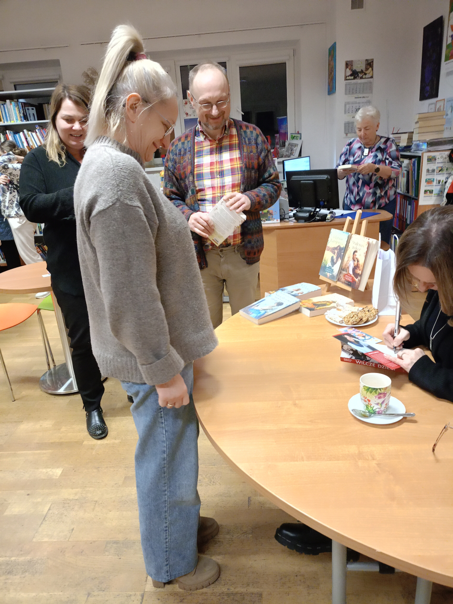Rozmowy były żywe, pełne refleksji i osobistych wspomnień. Po części oficjalnej pani Wioletta Sawicka podpisywała książki i rozmawiała z czytelnikami – atmosfera była bardzo ciepła i kameralna. Na zakończenie pani Sawicka podpisała książki, a biblioteka przygotowała wystawkę jej dzieł – to była piękna chwila bezpośredniego kontaktu autorki z czytelnikami.