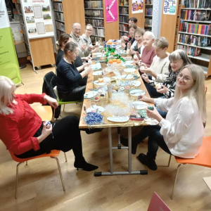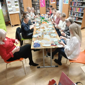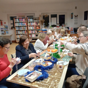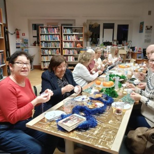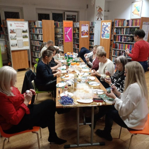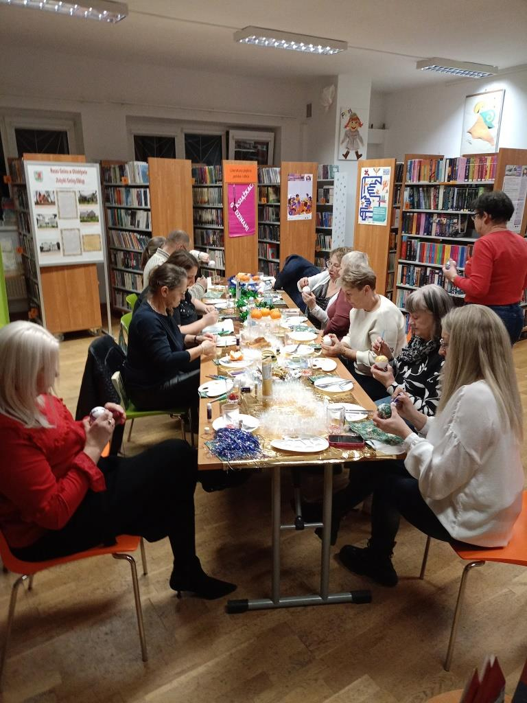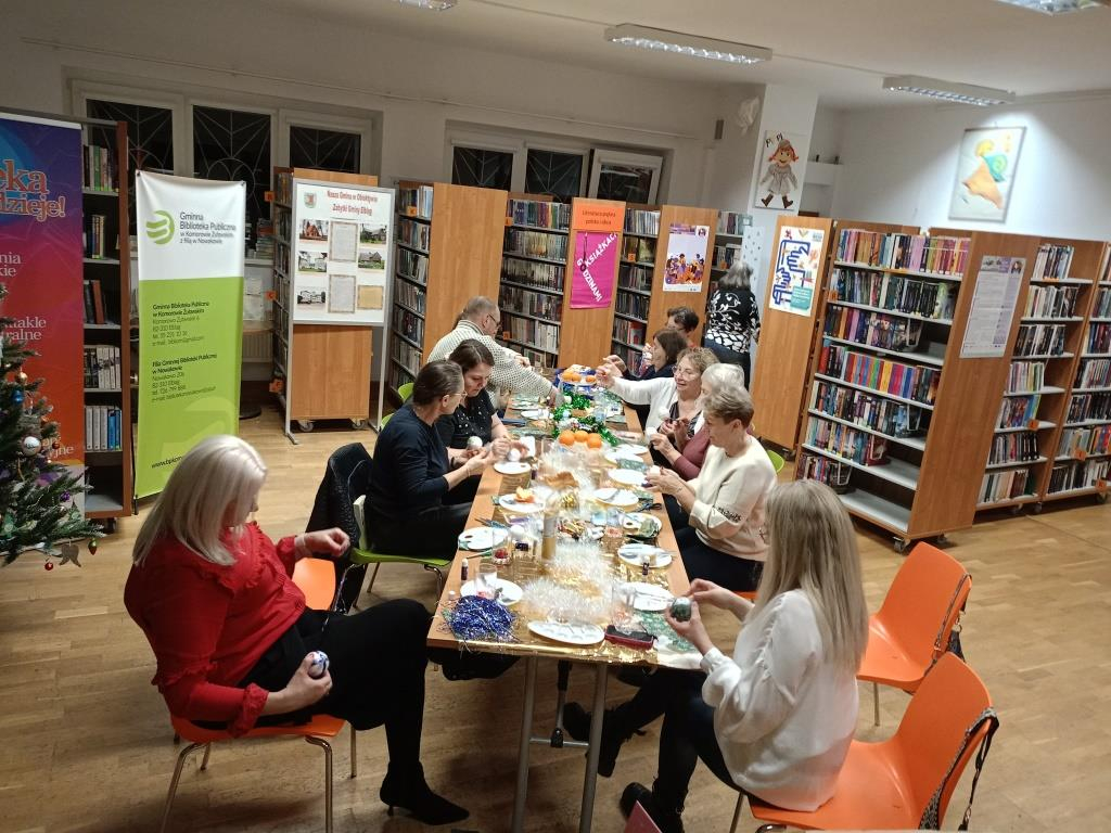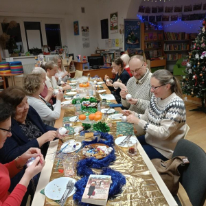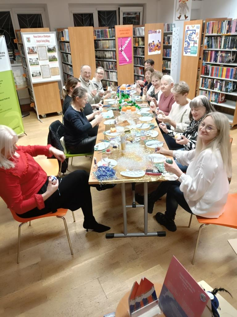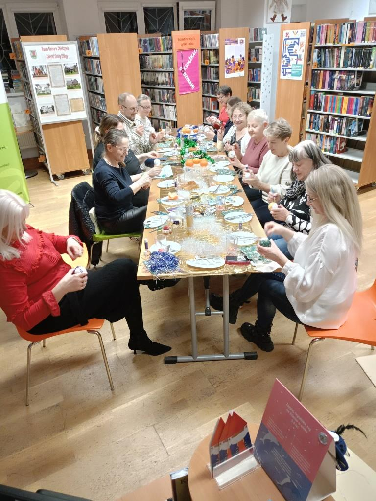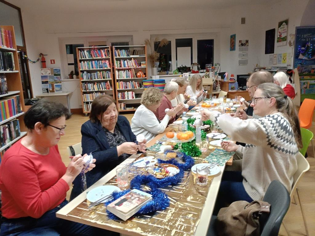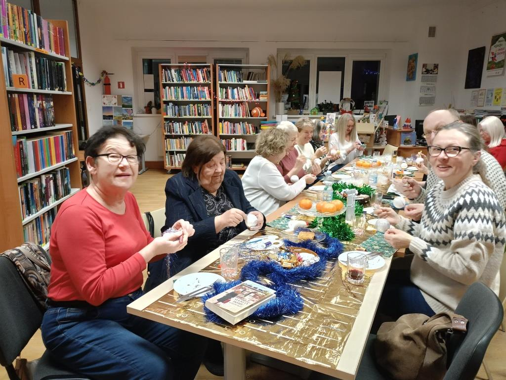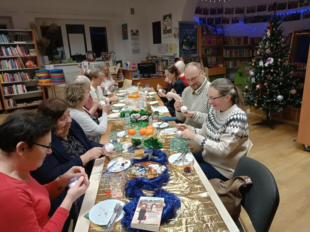 Po literackiej dyskusji odbyły się warsztaty zdobienia bombek, które wprowadziły klubowiczów w świąteczny nastrój. Każdy uczestnik mógł stworzyć własną, niepowtarzalną ozdobę, łącząc przyjemność czytania z twórczą zabawą. W atmosferze przedświątecznej radości powstały prawdziwe małe dzieła sztuki: bombki malowane, zdobione brokatem, wstążkami i własnoręcznie tworzonymi dekoracjami. Kreatywność klubowiczów jak zawsze nie zawiodła!