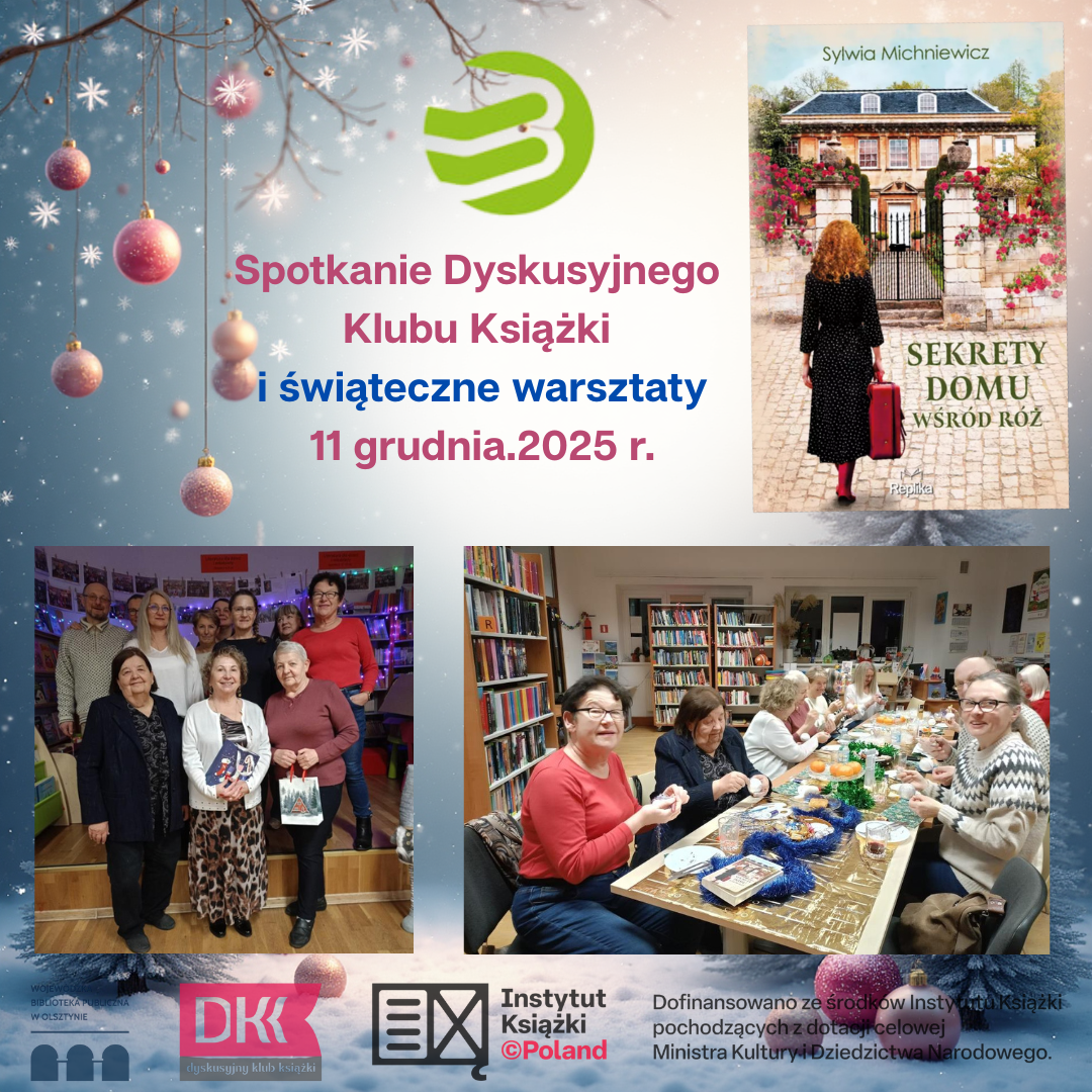 11 grudnia 2025 r. w Gminnej Bibliotece w Komorowie Żuławskim odbyło się spotkanie Dyskusyjnego Klubu Książki poświęcone książce Sylwii Michniewicz „Sekrety domu wśród róż”. Uczestnicy mieli okazję podzielić się wrażeniami z lektury i refleksjami na temat bohaterów oraz przedstawionych wątków.