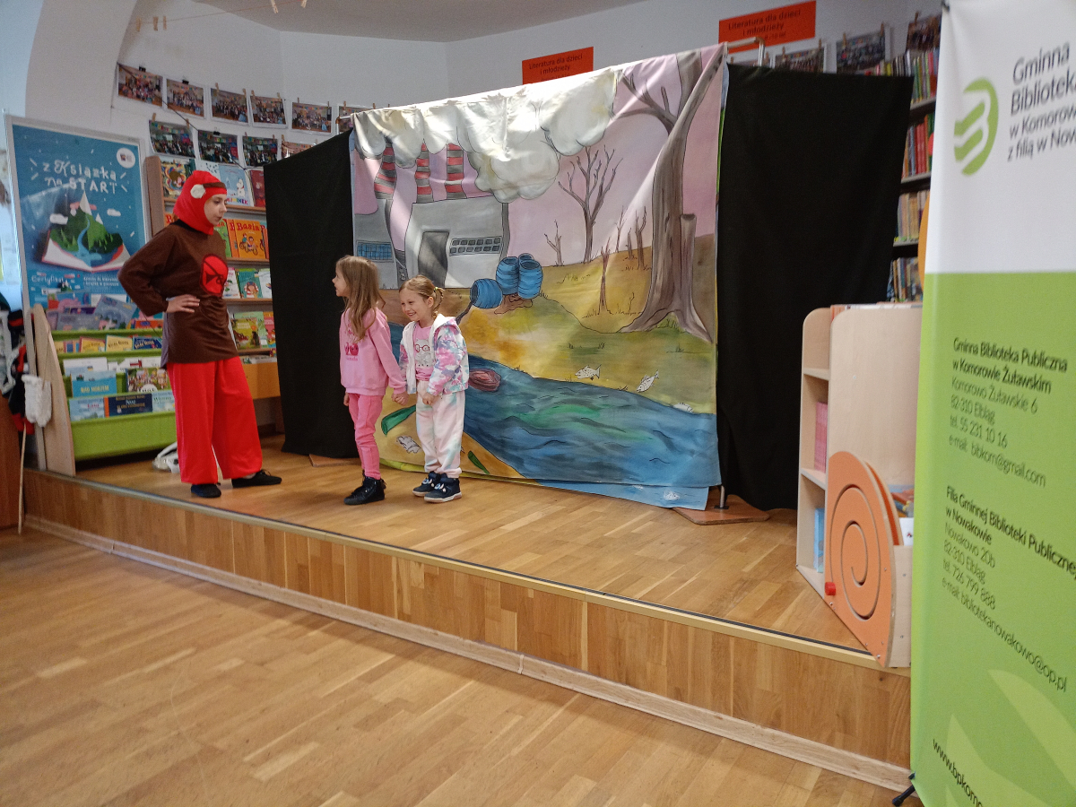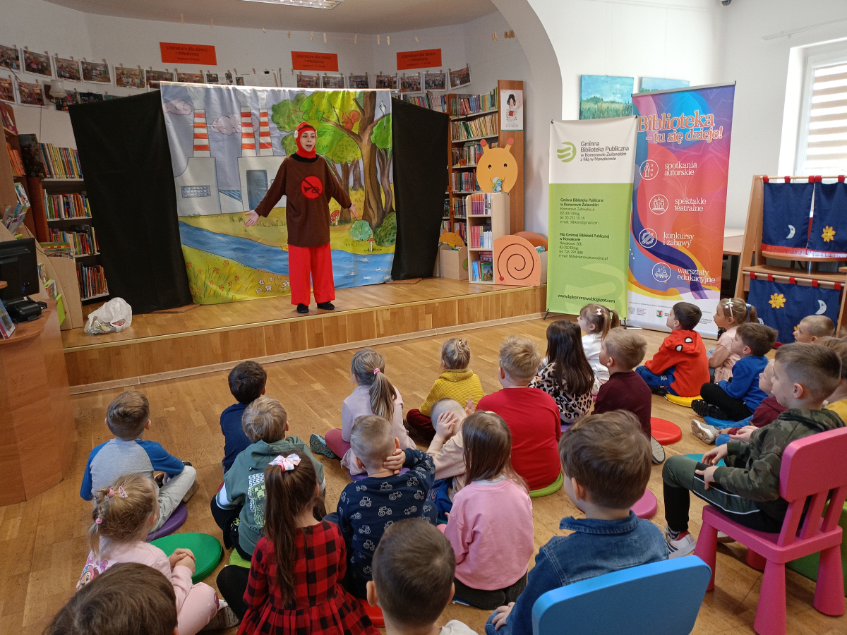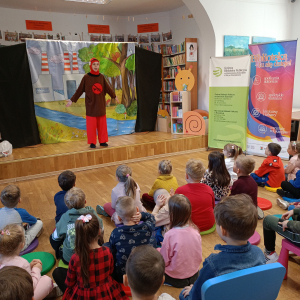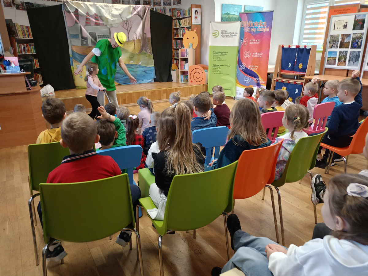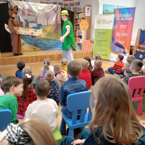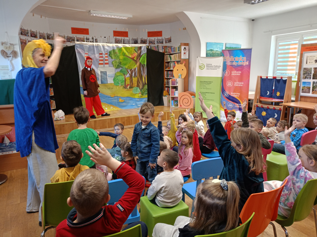 21 października 2025 r. w Gminnej Bibliotece Publicznej w Komorowie Żuławskim odbyło się radosne spotkanie z teatrem. Przedszkolaki z Gronowa Górnego obejrzały przedstawienie teatralne pt. „Klimacik i Decybelek” – pełne humoru, muzyki i ciekawych opowieści o ekologii oraz dbaniu o środowisko. Dzieci z ogromnym zaangażowaniem uczestniczyły w spektaklu, śpiewały, odpowiadały na pytania aktorów i wspólnie z bohaterami uczyły się, jak dbać o naszą planetę i unikać hałasu. Było kolorowo, wesoło i bardzo pouczająco. Takie spotkania to najlepszy sposób, by przez zabawę przekazywać najmłodszym ważne wartości.