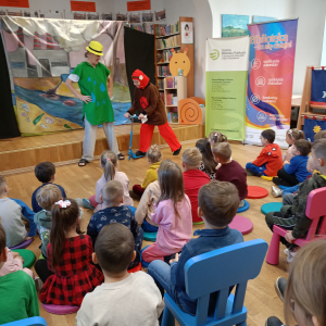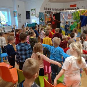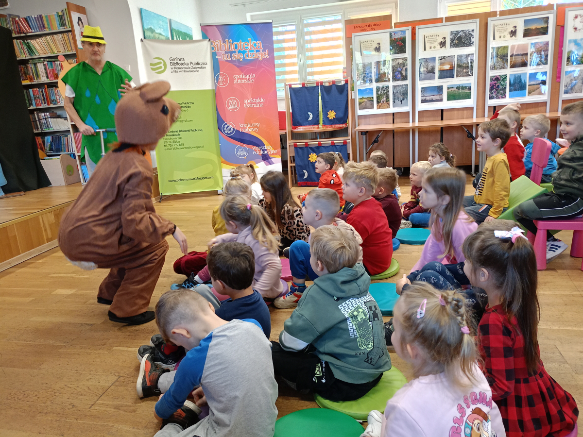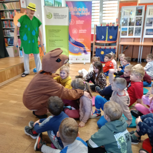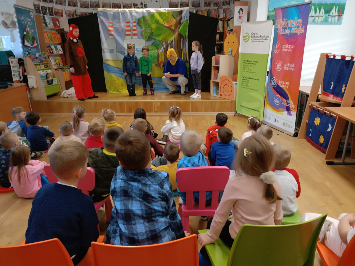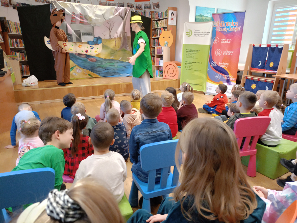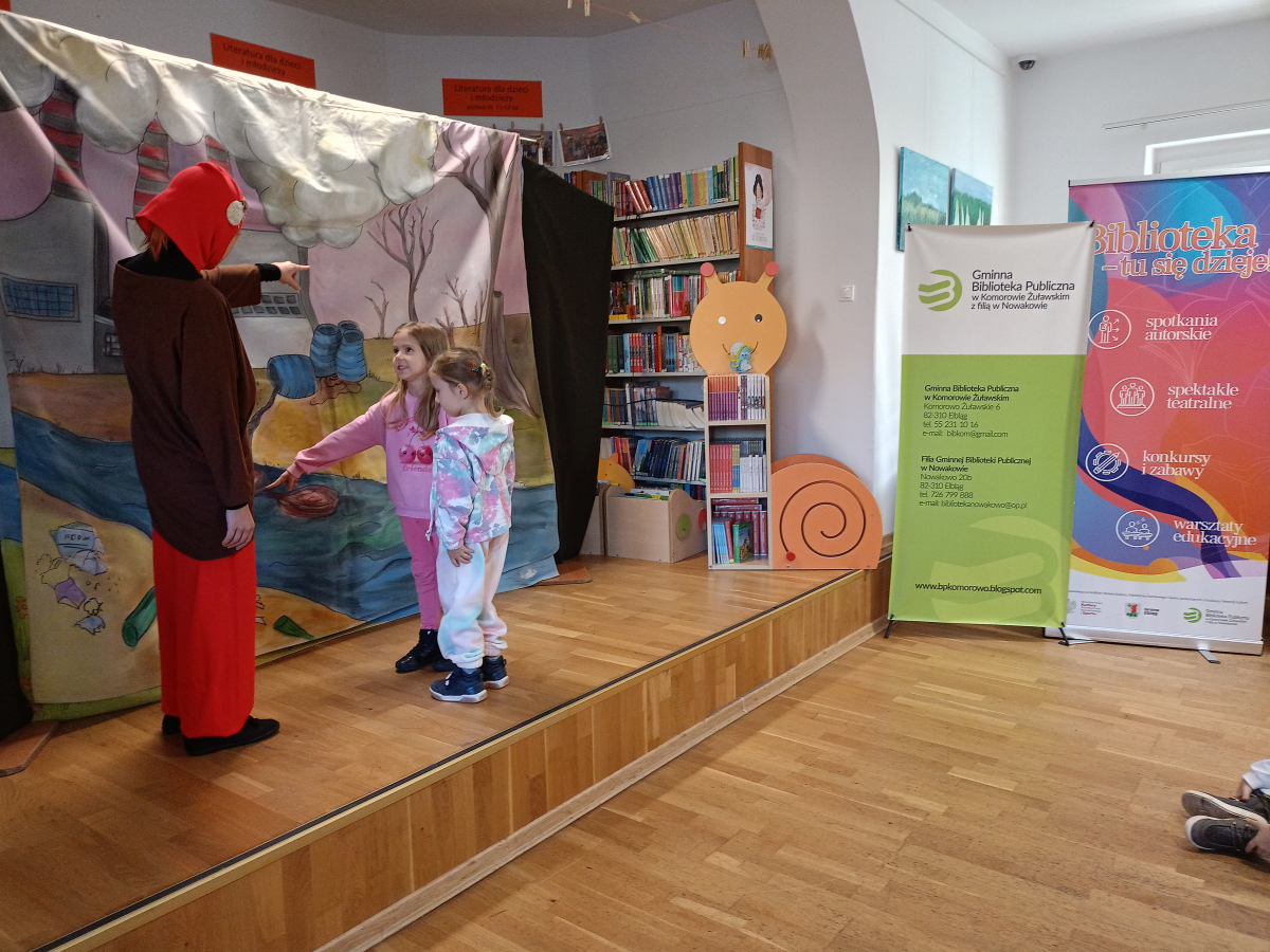 21 października 2025 r. w Gminnej Bibliotece Publicznej w Komorowie Żuławskim odbyło się radosne spotkanie z teatrem. Przedszkolaki z Gronowa Górnego obejrzały przedstawienie teatralne pt. „Klimacik i Decybelek” – pełne humoru, muzyki i ciekawych opowieści o ekologii oraz dbaniu o środowisko. Dzieci z ogromnym zaangażowaniem uczestniczyły w spektaklu, śpiewały, odpowiadały na pytania aktorów i wspólnie z bohaterami uczyły się, jak dbać o naszą planetę i unikać hałasu. Było kolorowo, wesoło i bardzo pouczająco. Takie spotkania to najlepszy sposób, by przez zabawę przekazywać najmłodszym ważne wartości.