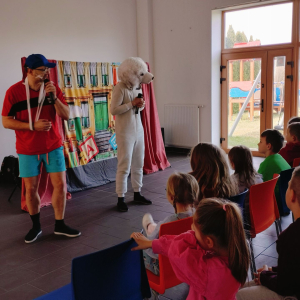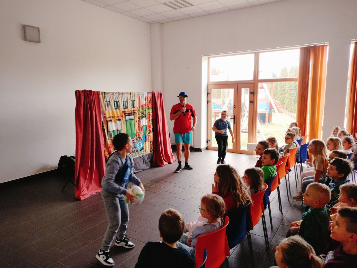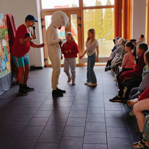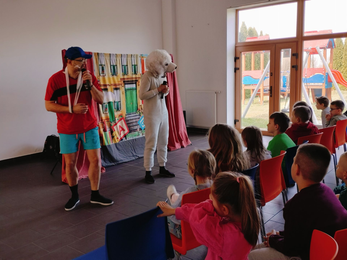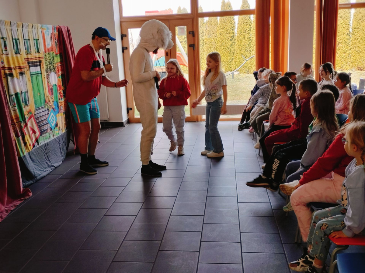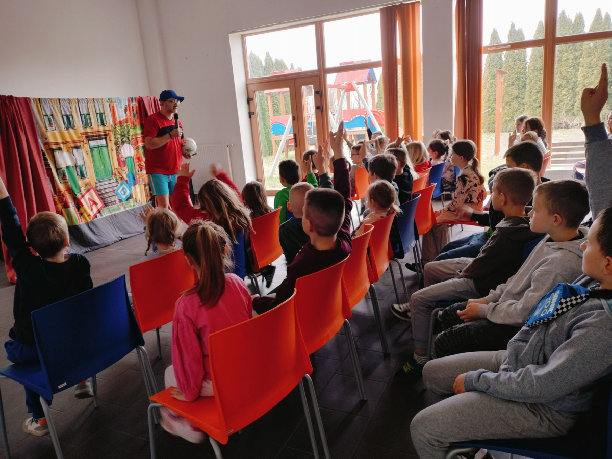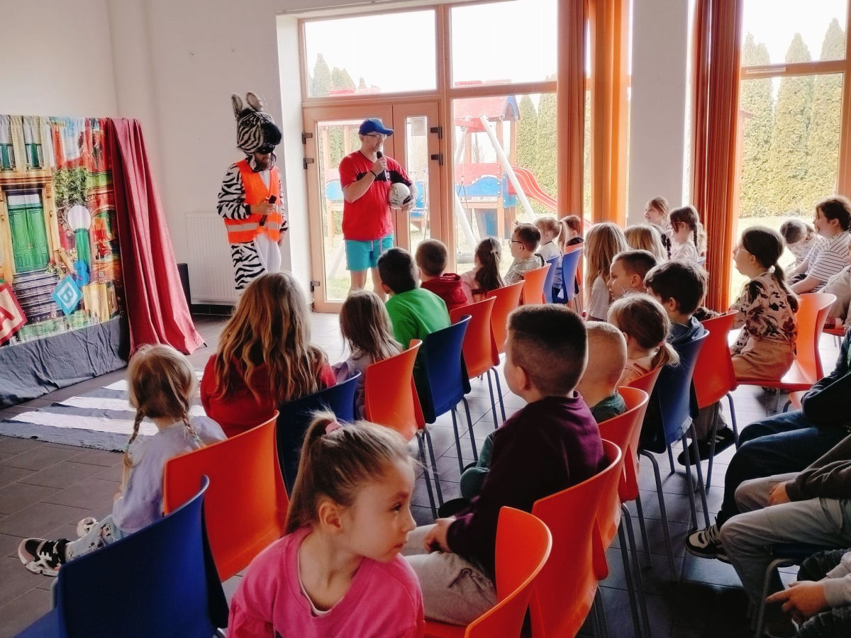 Dziś (24.03.2026) w bibliotece w Nowakowie odbyło się przedstawienie teatralne dla dzieci pt. „Zebra w krainie Bezpieczeństwa” w wykonaniu Małych Form Teatralnych „Miki” z Krakowa. Był to edukacyjny spektakl, który w interaktywny sposób uczy najmłodszych podstawowych zasad ruchu drogowego, bezpiecznego zachowania w domu i na drodze. Na widowni zasiadły dzieci z Oddziału Przedszkolnego oraz z młodszych klas PSP w Nowakowie. Przedstawienie zostało bardzo entuzjastycznie przyjęte przez naszą małą publiczność, szczególnie do gustu przypadła dzieciom skoczna i radosna piosenka o Zebrze, którą nuciły jeszcze długo po zakończeniu spektaklu.